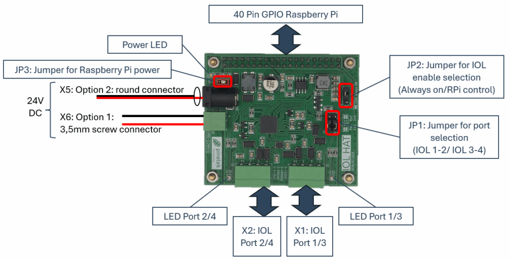 - stacking option for 2 IOL HAT modules on one Raspberry Pi (up to 4 ports in total)