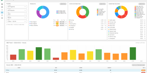 OEE (Overall Equipment Effectiveness) measures how much of your planned production capacity is actually being used, and where time is being lost. Our OEE Pilot makes this visible: in real time, without PLC modifications, without cloud dependency, without a months-long rollout.