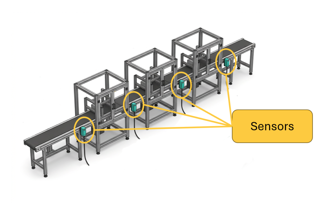 Mount IO-Link sensors (e.g. distance sensors) on your production line for part counting. The counting logic is already built into OEE Pilot. No machine modifications required — your PLC programs remain unchanged.
