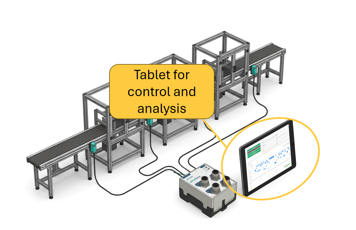 - No intervention in the control system: sensors run in parallel with the PLC, no machine release required, no feedback effects.